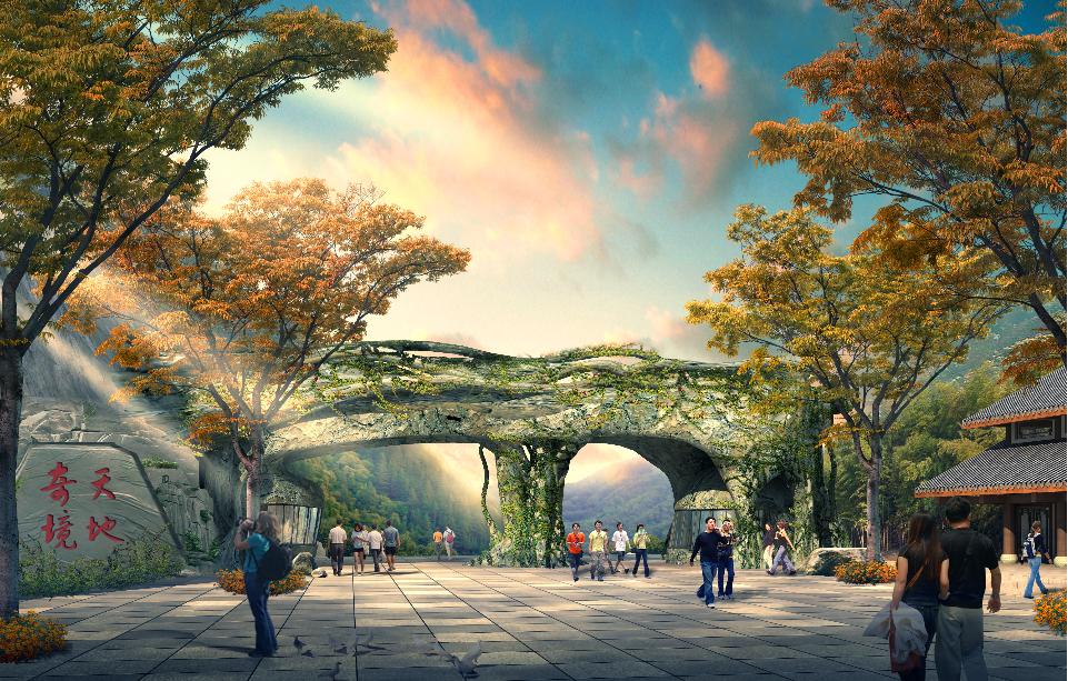 項(xiàng)目遵循“高起點(diǎn)、大視野、大旅游”原則,通過(guò)機(jī)構(gòu)科學(xué)、嚴(yán)謹(jǐn)?shù)淖稍兎椒ê凸ぞ哌M(jìn)行整合、提煉和分析,提出了“生態(tài)優(yōu)先”、“國(guó)際發(fā)展”、“集群發(fā)展”、“項(xiàng)目拉動(dòng)”、“和諧發(fā)展”五大策略,擬定“天坑地縫·天地人和”的主題定位。充分尊重現(xiàn)狀、利用現(xiàn)狀,采用軸線布局手法,形成本項(xiàng)目“一核一軸·三大片區(qū)”的布局結(jié)構(gòu)。