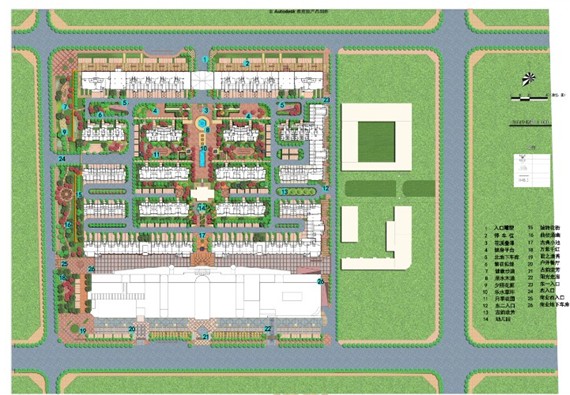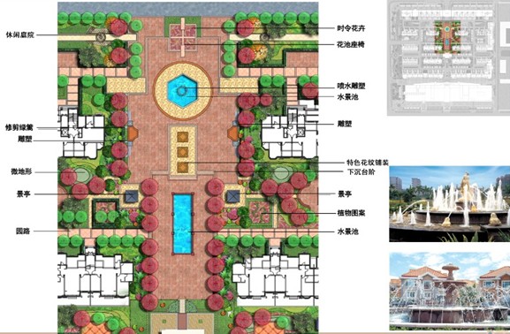 項(xiàng)目考慮“人、自然、空間”之間的和諧關(guān)系,堅(jiān)持以人為本的設(shè)計(jì)理念,在設(shè)計(jì)中以生態(tài)環(huán)境優(yōu)先為原則,充分考慮建筑和景觀之間的關(guān)系,通過材料和造型的運(yùn)用,將歐式建筑和新古典景觀進(jìn)行風(fēng)格樣式上的對(duì)接。在規(guī)劃的同時(shí),輔以景觀設(shè)計(jì),最大限度的體現(xiàn)居住區(qū)本身的底蘊(yùn)。設(shè)計(jì)中結(jié)合當(dāng)?shù)靥厣?,在小區(qū)中設(shè)置小區(qū)中心景觀軸線、橫向景觀帶、生態(tài)種植區(qū)等。在中心景觀軸線當(dāng)中設(shè)置了歐式的矮墻噴泉、花溪疊瀑、下層廣場(chǎng)、噴泉水景等,使居民樂居其中。規(guī)劃設(shè)計(jì)注重園林景觀的可參與性,在小區(qū)內(nèi)設(shè)置開闊的硬質(zhì)景觀,如波紋鋪地、琴韻廣場(chǎng)等。小區(qū)內(nèi)公共空間、私密、半私密空間如:下層廣場(chǎng)和健康步道兩者的公共性和私密性設(shè)計(jì)對(duì)比強(qiáng)烈,動(dòng)靜結(jié)合。通過不同的景觀設(shè)計(jì),也為小區(qū)居民提供空間上充足、多樣的休閑、交往、活動(dòng)場(chǎng)地,營(yíng)造和諧、友善、溫馨的人際關(guān)系氛圍。