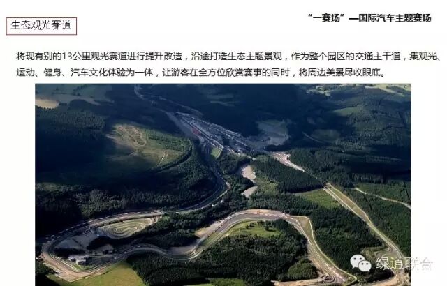 綠道聯(lián)合在北京大安山汽車公園的規(guī)劃設(shè)計(jì)項(xiàng)目,重點(diǎn)打造5個(gè)板塊,集汽車賽事活動(dòng)、汽車主題休閑、汽車服務(wù)配套,結(jié)合區(qū)域鄉(xiāng)村農(nóng)業(yè)發(fā)展,將汽車主題活動(dòng)形成園區(qū)化、產(chǎn)業(yè)化。